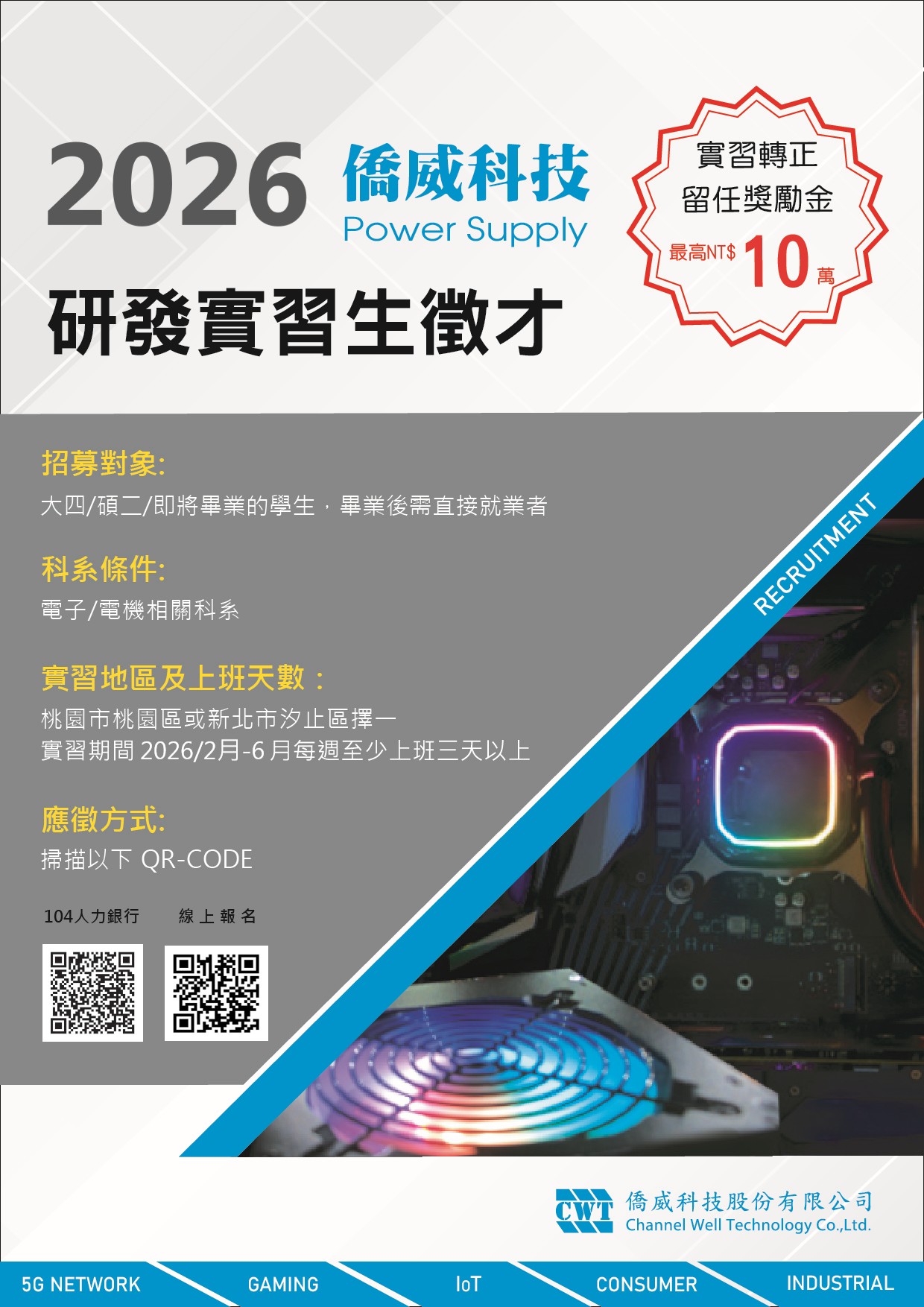 資訊科技 僑威科技股份有限公司 其他專業 研發實習生(桃園) 桃園市桃園區 2026-01-31 0